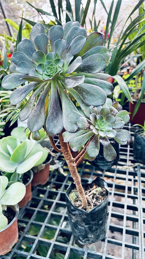 The Aeonium Arboreum is a stunning succulent featuring large rosette-shaped leaves that grow on tall branching stems, creating a beautiful tree-like appearance. Its unique structure makes it a standout decorative plant for balconies, patios, and modern indoor plant collections.