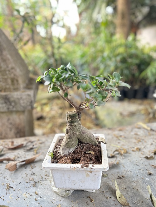 The Ficus Microcarpa Bonsai, also known as the Chinese Banyan Bonsai, is a miniature version of the Ficus tree. Native to Southeast Asia, it is widely grown as a bonsai due to its thick trunk, aerial roots, and ability to form a dense canopy. The plant is highly valued in bonsai culture for its elegant appearance.