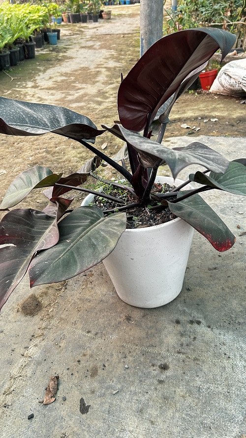 The Philodendron Black Cardinal is a hybrid tropical plant belonging to the Araceae family. It is admired for its large, leathery leaves that change colour as they mature, starting as bright red and deepening into dark burgundy or almost black. Its dramatic colour makes it one of the most popular ornamental philodendrons for indoor décor.