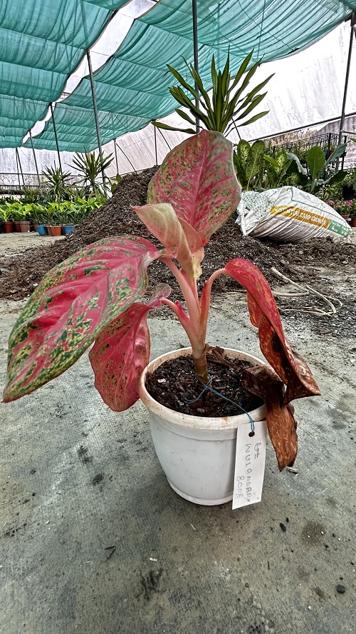 The Red Aglaonema, also known as Chinese Evergreen, is a tropical ornamental plant native to Southeast Asia. It is admired for its colourful foliage featuring shades of red, pink, and green. This plant is widely grown as a houseplant due to its ability to thrive in indoor environments.